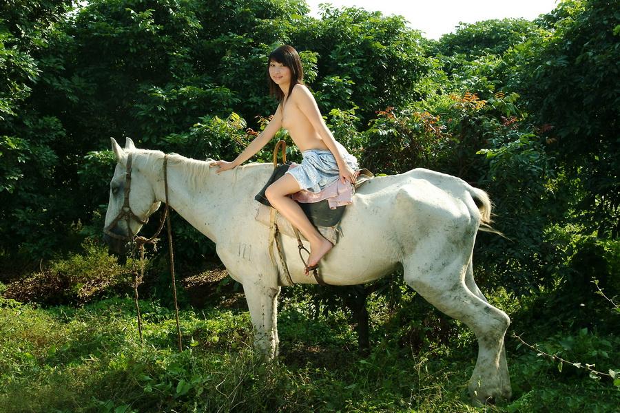 裸身骑白马的甜美美模-丹尼