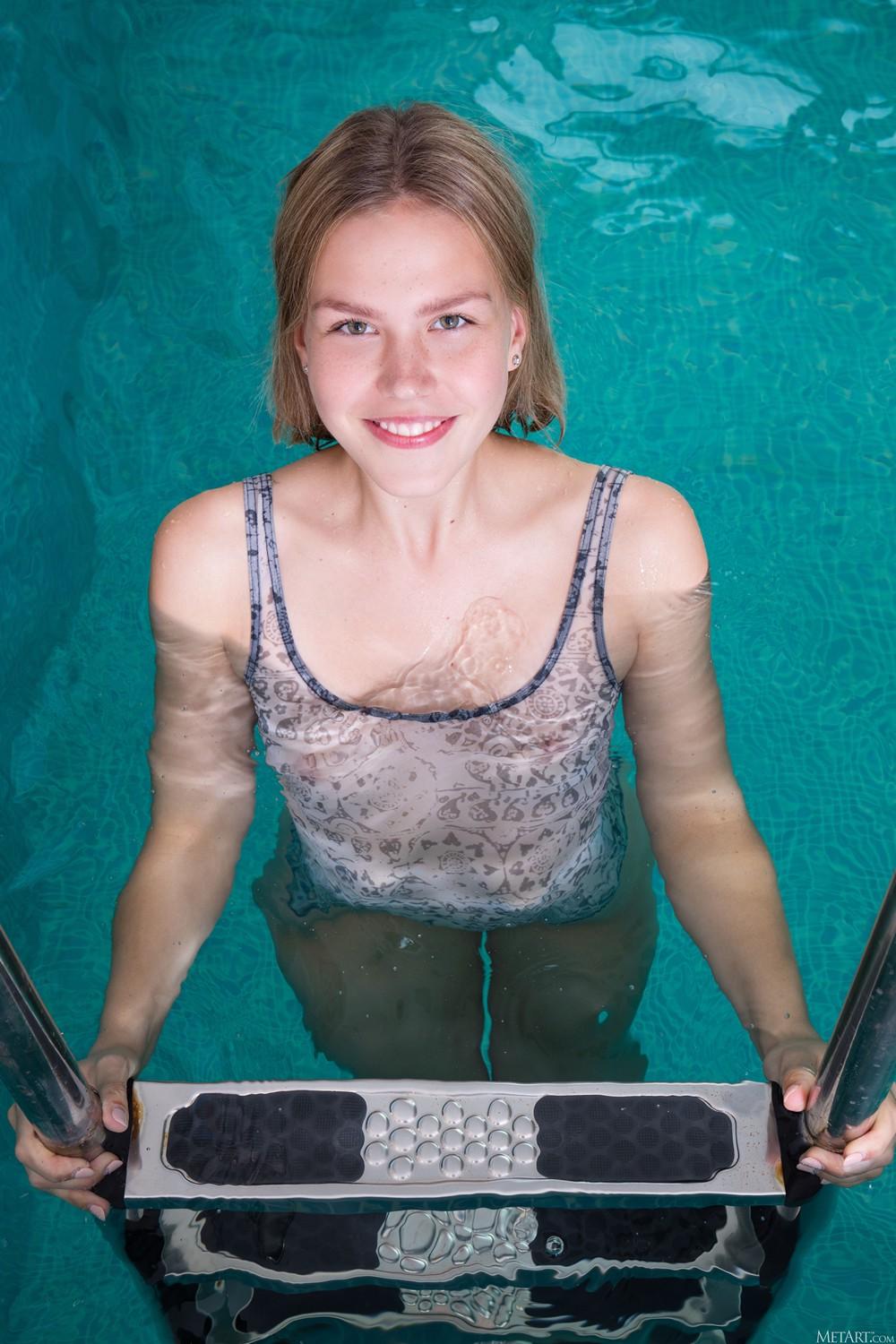 粉穴妹子泳池边嬉戏,还未下水下面就湿透了