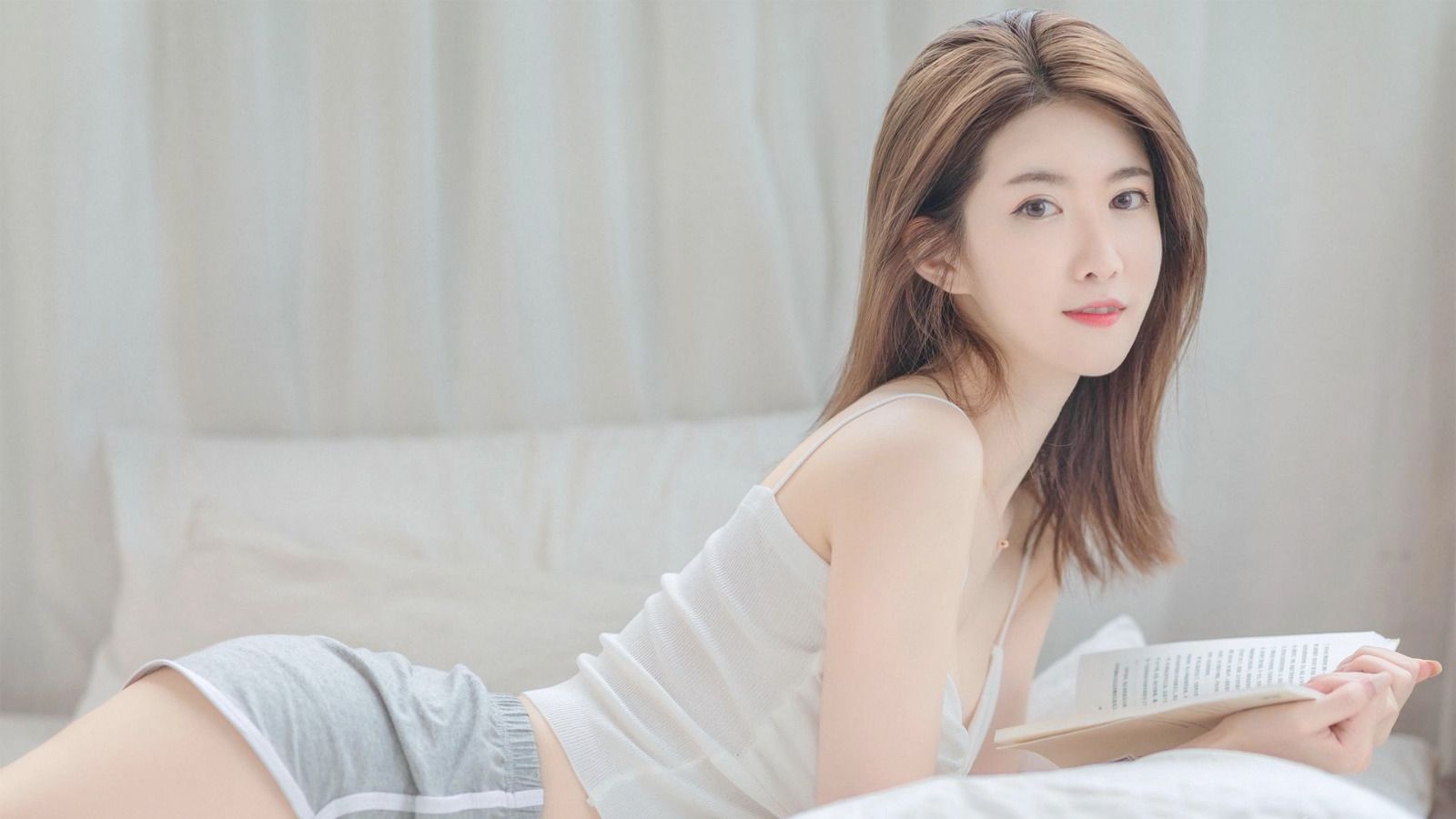 而中央镂空的大胆设计,更一路将她胸口到肚脐之间吹弹可破的肌肤展露无遗;背後的束背质材则是以几近透视的惹火蕾丝,一眼就看穿马甲下是「真空状态」的大胆撩人,并且把小嬿光滑细致的美背衬托至艺术品般动人。