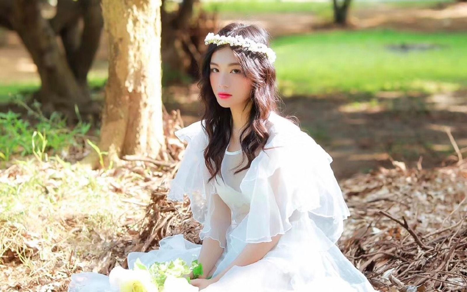 腰间布带缠身,长长的秀发用一根草绳挽成了一个双髻,脚穿青布小鞋,莲步轻移,这不正是古时女子的打扮么?