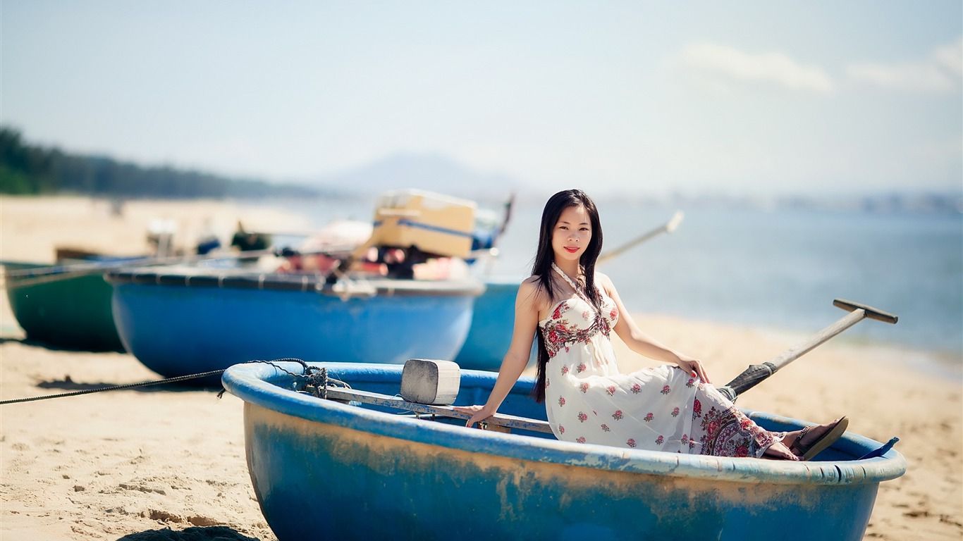 女孩上半身穿着牛仔夹克,留着黑色齐肩短发,光是透过背影就能大概猜出这是一位美女。