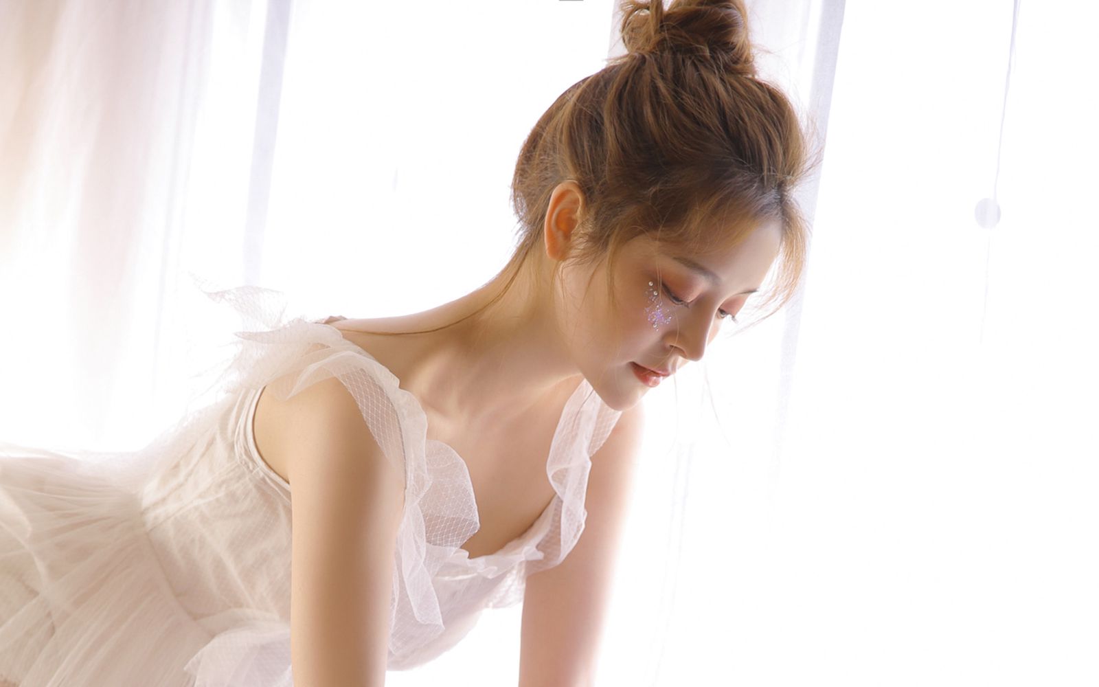如白雪般纯洁的连体丝袜,轻轻地覆盖在她们娇嫩的肌肤上,仿佛是精灵们用心编织的柔软天使之羽。