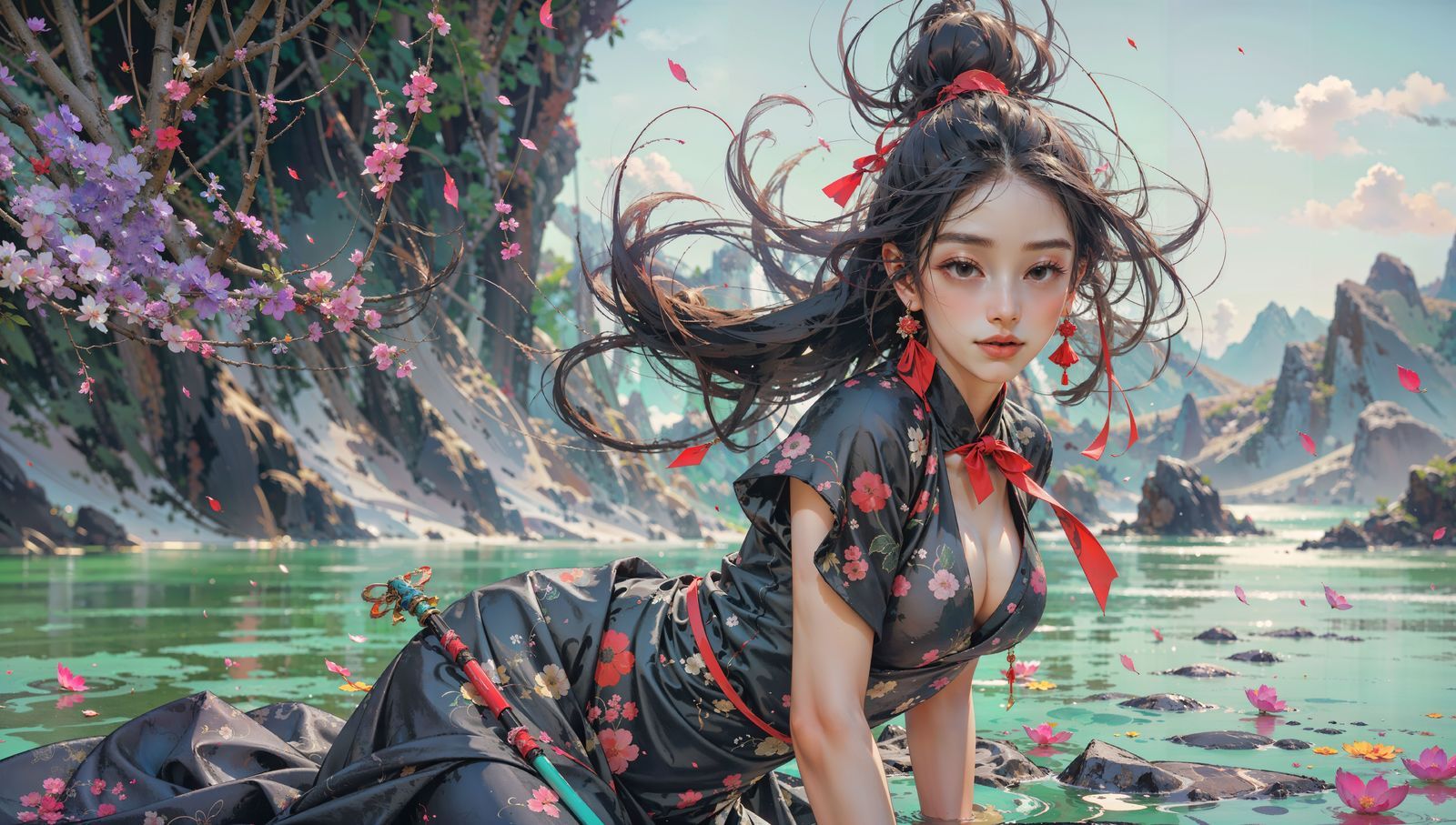 苏瑾时用剑指地,翻身稳固着地。