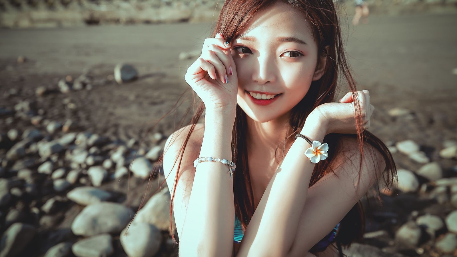 “嗯…谢谢。”地上的女人握住了那只跟自己一样但又更白嫩纤细的手,从而借力起身。