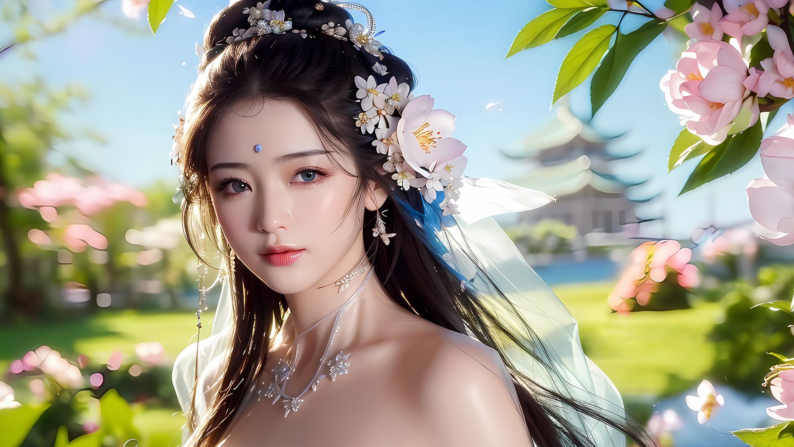 那些美女们从水中走出来,再往一道断崖走过,只一转眼间便不见了!