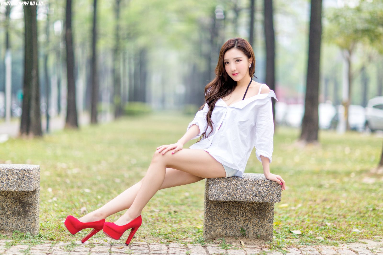 此时的陈伶玲就像一个玩偶般背对郁邶风跨坐在他的腿上,因为之前尿湿了身上的网衣,现在的她已被主人更换了装扮,红色的龟甲缚式绳衣与她腿上的长筒白色丝袜相互映衬,形成了强烈的视觉冲击,银白色的露趾高跟鞋让她小腿显得更为修长,但在出门下楼车库上车这短短的路程中,对于陈伶玲这种几乎没有穿戴经验的少女来说,无疑是一种酷刑。