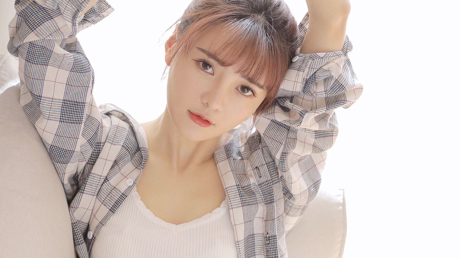 洗漱完后,她换上一件淡奶茶色的针织居家服,头发简单绑起,素颜,眉眼依旧柔和。