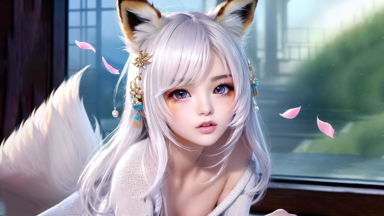 逆着日光,少女本就瓷白的肌肤更显剔透,连脖子上的青色脉络都隐约可见,她穿着一袭交领轻纱白裙,梳着俏丽淑婉的垂挂髻,脸蛋精巧漂亮,只消站在那儿,便让人觉得赏心悦目。