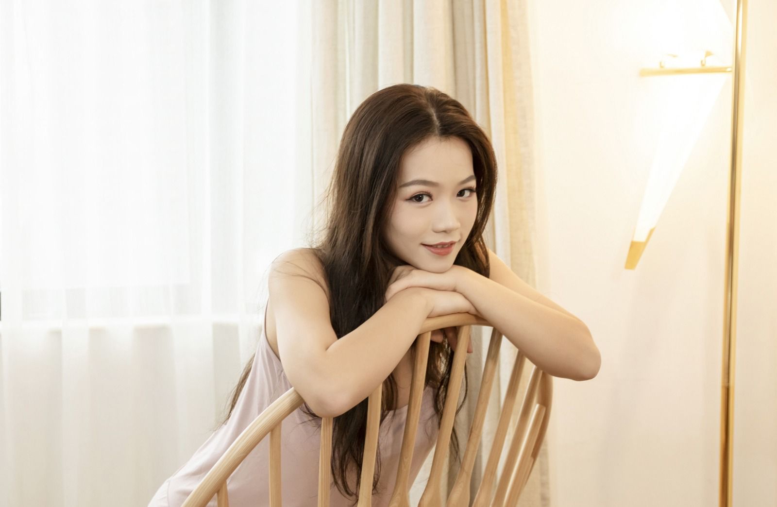 「……好、好了。」她低着头走出来,双手不自觉地挡在胸前。
