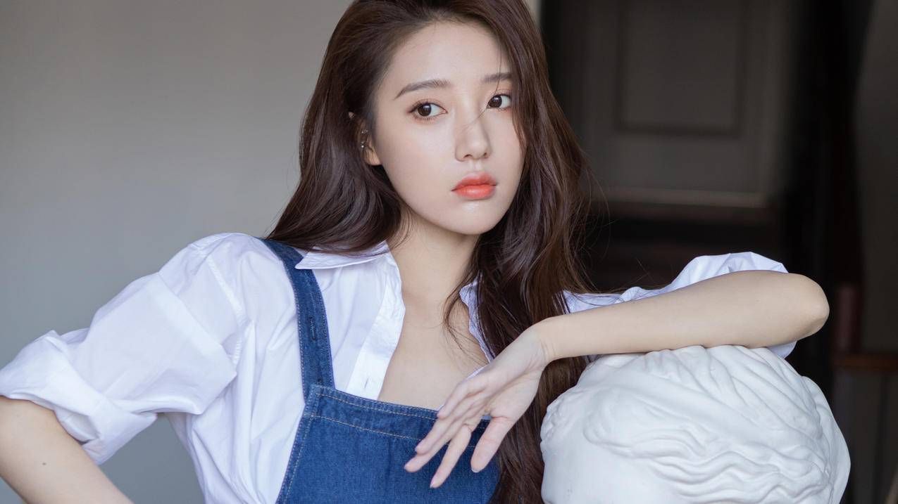 她大概一米七的高挑身材,皮肤粉白,留着一头顺直乌黑的披肩长发,少许的几缕秀发贴在的脸蛋上,肤色白皙,五官精致,大眼睛长睫毛,精致的脸蛋上涂了一层淡淡的粉底,小巧的檀口配上稍厚的嘴唇显得性感妩媚。