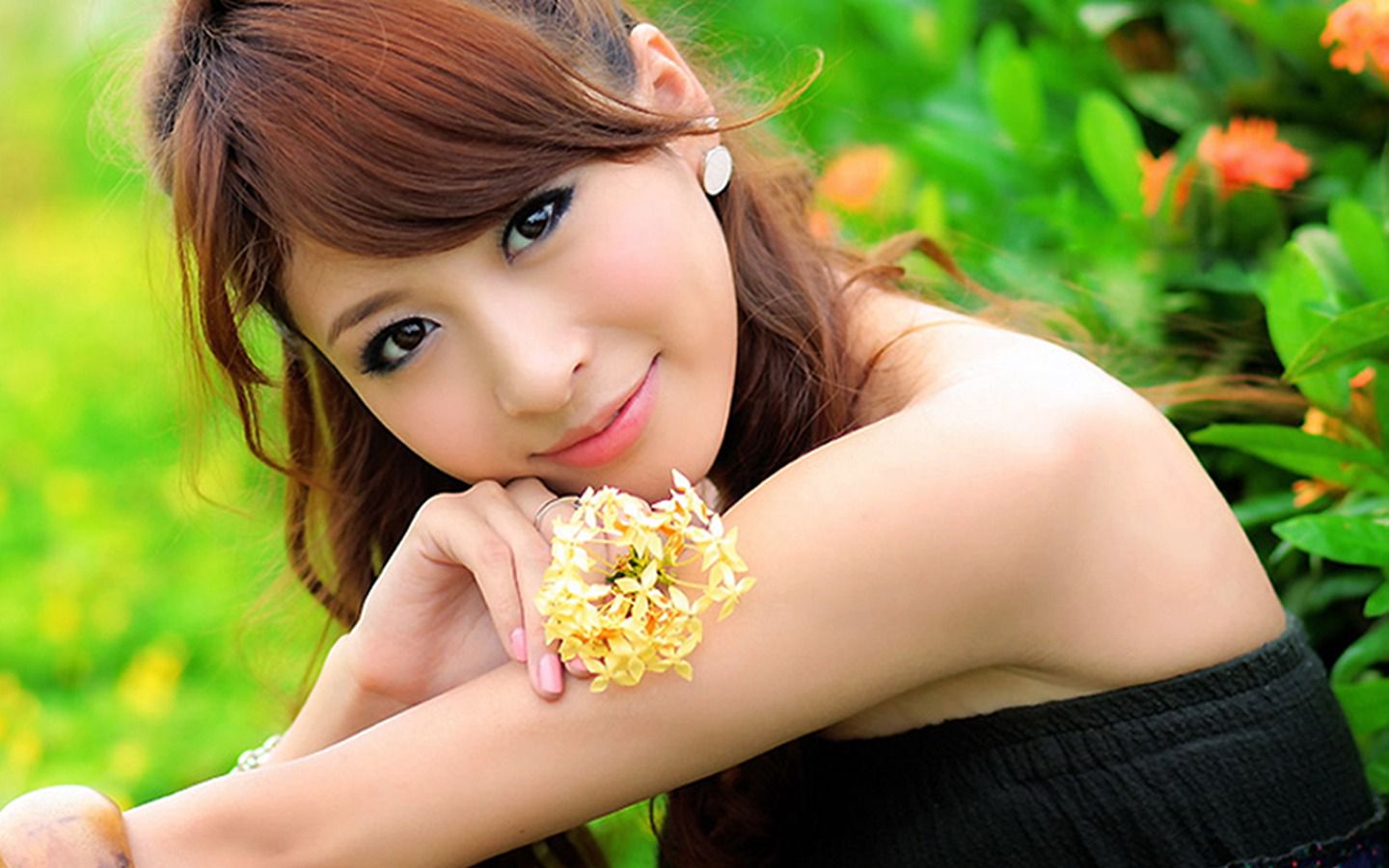 一头大波浪简单地扎在脑后,圆润秀美的耳垂上挂着两个简约的吊坠。修长光洁的脖颈下面是一件黑色圆领半袖T恤,袖口刚及手肘,露出那白玉般的皓腕。右手腕上戴着一块黑带白盘的女士腕表。