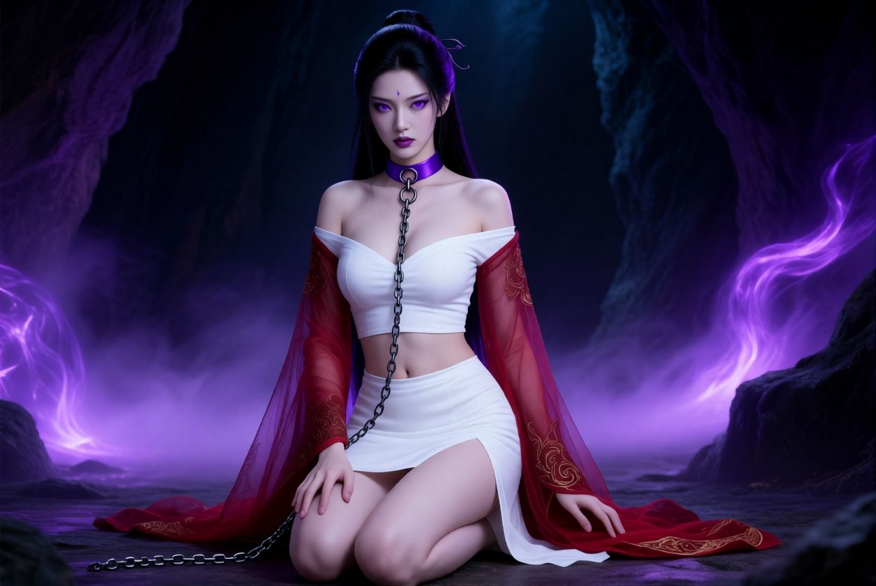 第一集。月夜调教。血煞峰犹如一柄染血的巨刃倒悬于天地之间,翻涌的血色雾气将整片山峦笼罩在诡谲的绯红之中,这时一道刺目的红色闪电骤然划破夜空,将缭绕的雾气短暂撕裂,一道窈窕的身影稳稳落到沈墟洞府之外,她一头及腰的乌黑直发,发尾微卷,眼睛形似狐狸,眼尾上挑,深紫色瞳孔,眼神冰冷锐利,外罩血红色透明纱衣,隐隐露出完美的身材曲线,内穿紧身纯白内袍贴合着坚挺饱满的乳房,短裙仅遮住大腿根部,露出修长的双腿,腰系紫色丝绸腰带,腰带上挂着血祭短刀,腰肢纤细的几乎可以一握,脖子上戴着紫色项圈,项圈中央有一个银色圆环,脚蹬黑色短皮靴,整个人散发着冰冷与危险的诱惑,她手捏法诀,刹那间,一道结界释放出来,将方圆十里笼罩其中,结界散发着红色光芒,将一切外界的窥探和干扰都隔绝在外,夜璃的唇角微微上扬,紫瞳闪烁着渴望的光芒,双膝一弯缓缓跪下,她身体前倾,双手撑地,腰肢扭动,如同一只优雅的黑豹,缓缓跪爬进沈墟的洞府,每一次移动,臀部都会微微扭动,让那圆润的曲线更加诱人,进入房间后,额头轻轻磕在地面上,乌黑的长发如同瀑布般倾泻而下,遮盖住精致的脸庞,声音低沉而沙哑,带着一丝颤抖的兴奋,贱奴,拜见主人。