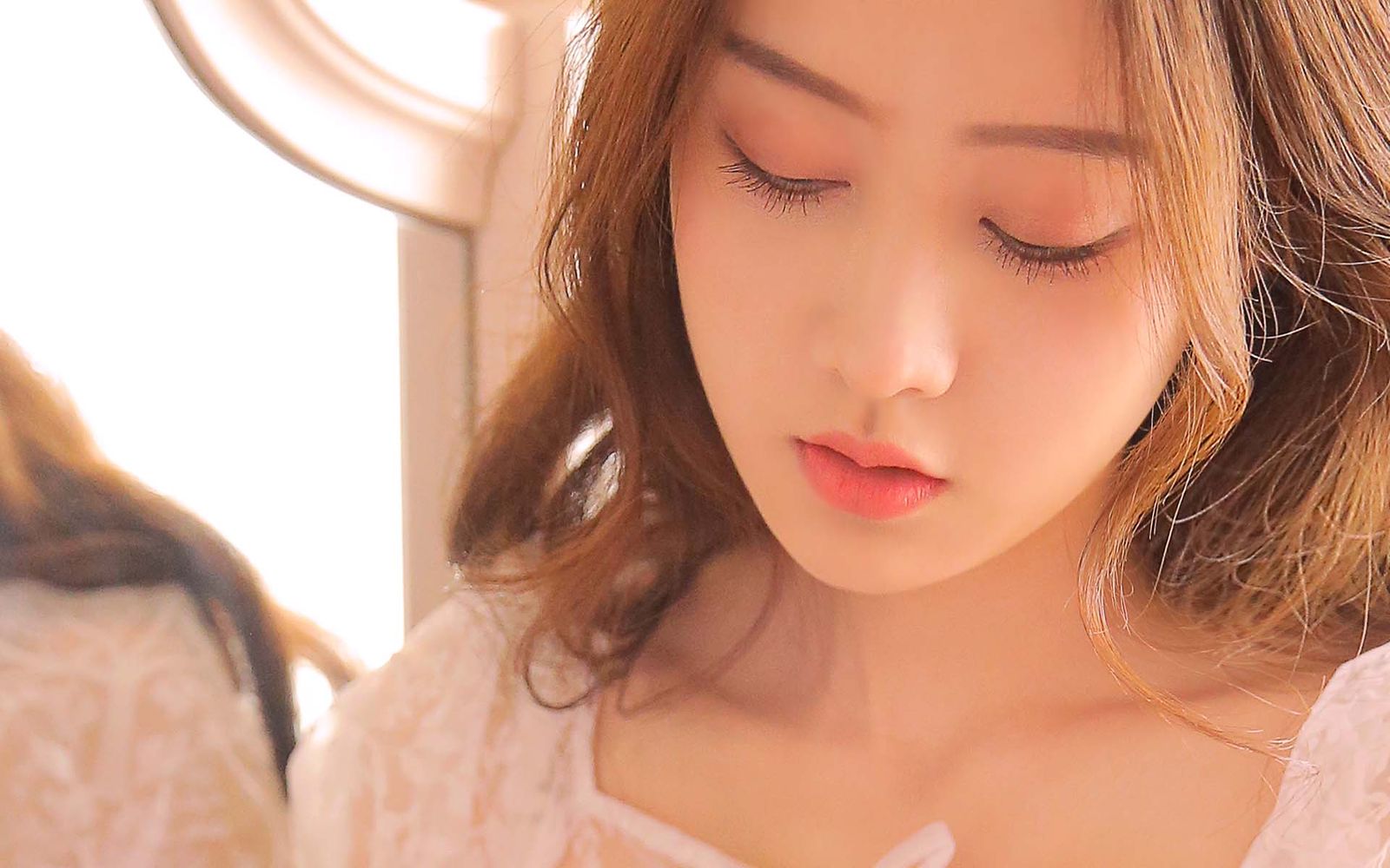 她的双手交叉放在腿上,左手腕上系着一根纤细的银色手链,手指轻轻搭在裙摆上,指尖将布料微微卷起。笔直修长的双腿自然交叠在一块儿,鞋尖轻轻触碰,脚趾在鞋尖处微微晃动着,令得鞋子传来细微的抖动;从脚尖的柔嫩到脚踝的骨骼分明,再到小腿的线条,一切都显得那样清冷优雅。她眼睑轻阖,长发松松地挽在脑后,几缕发丝散落在肩头,在风中随意摇曳,仿佛随时会滑落在她的脸颊上。