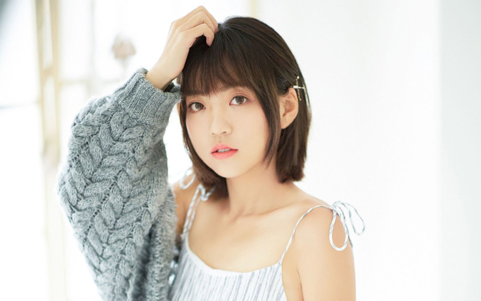 这种姿势让女孩双腿微分,纯白色的内裤显露一角,明明动作恶劣内心却毫不设防的天真,近乎残忍。