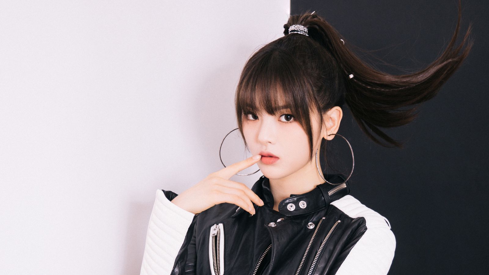 她有些拘谨地坐在你办公桌对面的椅子上,帮你整理着一些无关紧要的文件,时不时地会偷偷抬眼看你一下,眼神中带着一丝好奇和几分不易察觉的羞涩。